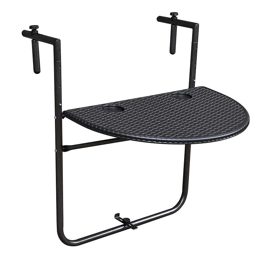 Trvanlivý stôl navrhnutý pre balkóny alebo terasové oplotenie. Vyrobené z pevného plastu najvyššej kvality. Stolová doska bola vyrobená v štýle technoratíny, ktorá jej dáva vizuálne zaujímavý efekt. Stôl má stabilný kovový rám, práškovo lakovaný tak, aby bol hladký a rovnomerný. Materiál je odolný voči UV žiareniu a nepriaznivým poveternostným podmienkam. Veľmi ľahko sa čistí, len utrite vlhkou handričkou. V tabuľke sú vytlačené otvory, ktoré dodatočne chránia nápoj pred prevrátením a rozlievaním. Skladací. K stolu odporúčame stoličky z rovnakej série.