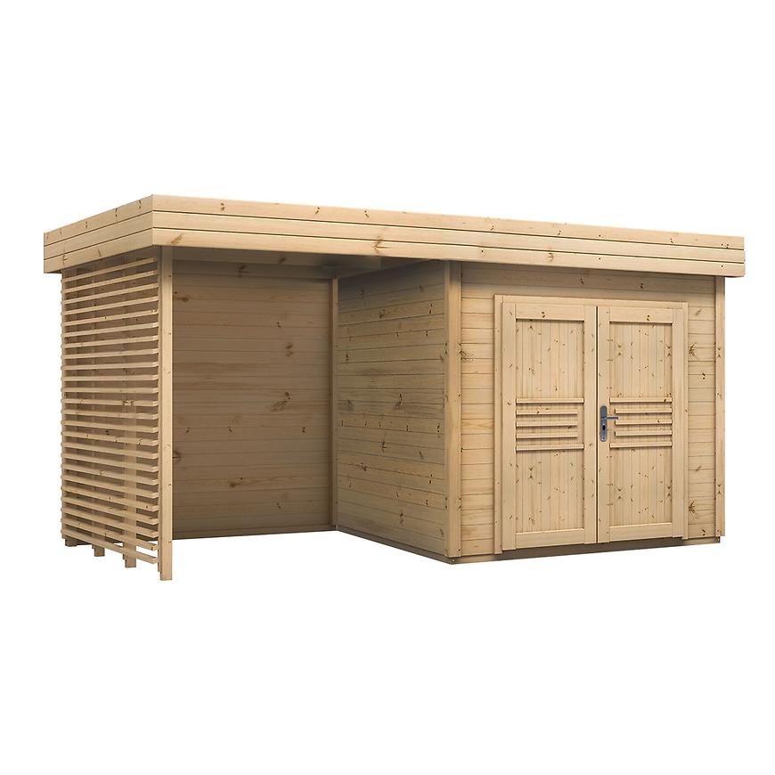 Záhradný domček Malwa bude dokonalým miestom pre sklad. Je krytý plochou strechou, vyrobenou ako celý dom zo smrekového dreva. Strecha je pokrytá asfaltovým pásom. Jeho ďalšou výhodou je prístrešok / dostavanie so strieškou so zatváracou stranou, ktorá vám umožní odpočinok v tieni alebo bude doplnkovým úložným priestorom. Strechu je možné inštalovať zrkadlovo. Domček má modernú a jednoduchú forma.