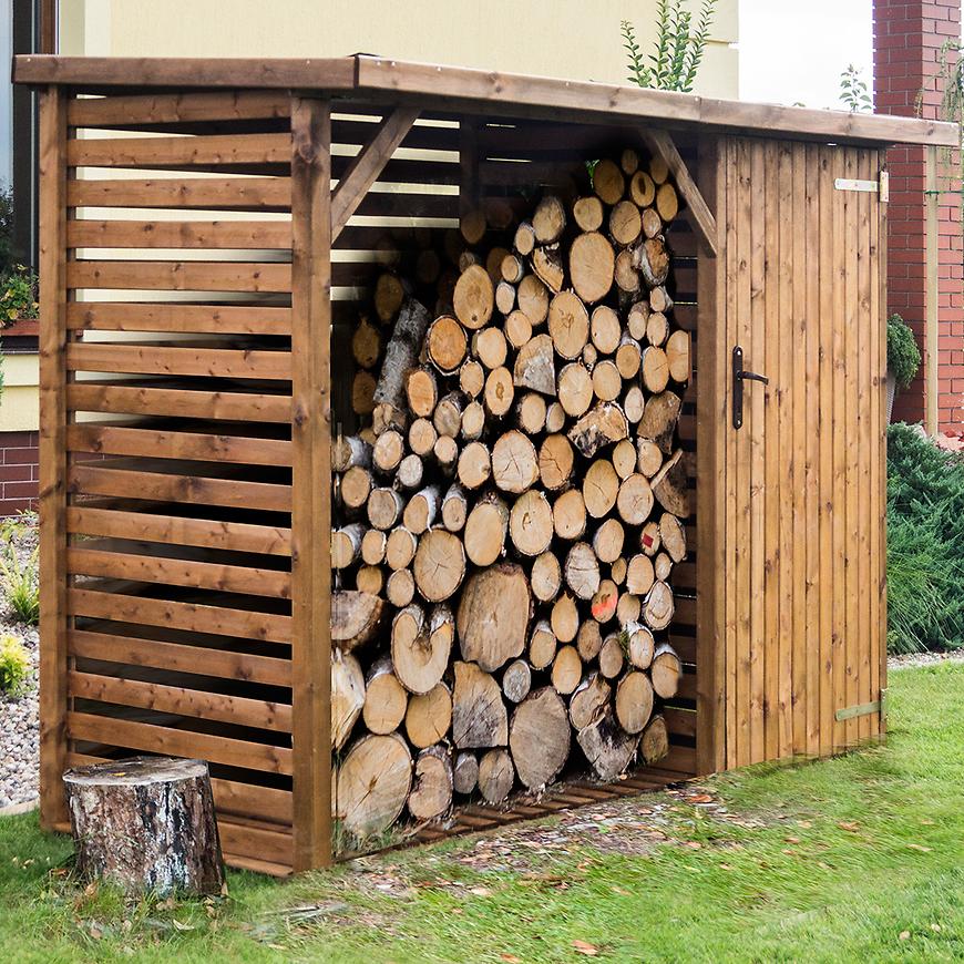 Klasický drevený stojan na sezónne skladovanie palivového dreva. Poskytuje správne podmienky na sušenie a správne skladovanie dreva. Okrem úžitkových hodnôt – ako ochrana pred dažďom či snehom, z neho estetické prevedenie urobí elegantný prvok každej záhrady.