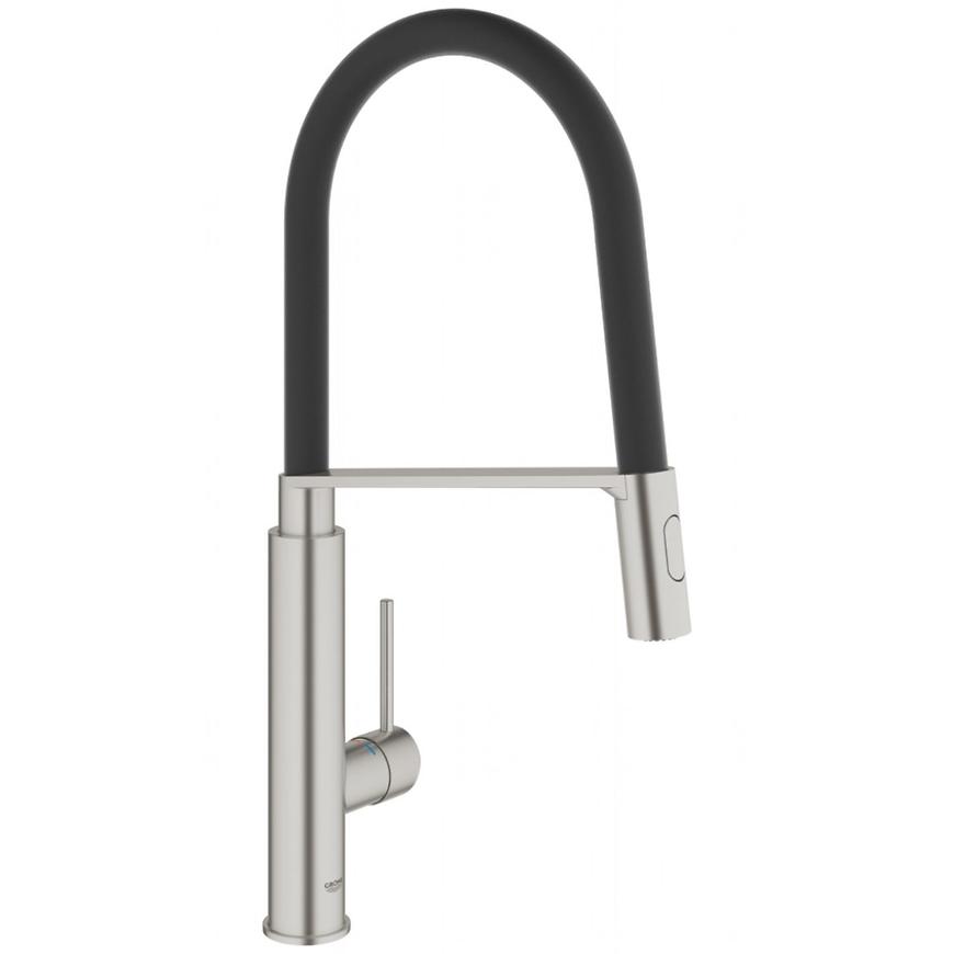 Získajte univerzálneho kuchynského pomocníka v podobe batérie GROHE Concetto Professional. Jej elegantný, moderný a nadčasový dizajn bol inšpirovaný profesionálnymi batériami, a preto sa vyznačuje flexibilitou a funkčnou technológiou. S týmto výtokom získate úplnú slobodu rozmiestnenia, pretože jeho inštalácia s jednoduchým montážnym systémom je možná všade, od umývadiel umiestnených na stene až po ostrovčeky. Výtok ponúka 360 ° otočný rozsah, takže môžete pokryť každý roh drezu a profesionálna výsuvná hlava je ideálna na preplachovanie zeleniny alebo plnenie dokonca vysokých riadov. Ponúka dva režimy prúdenia – štandardný a výkonný. Po použití systém GROHE EasyDock M automaticky zatiahne hlavu do výlevky silným magnetom. Batéria má technológiu SilkMove, ktorá zaisťuje presnú a hladkú reguláciu prietoku a teploty vody. Okrem toho sa ľahko udržuje, pretože silikónová hadica GROHFlexx a trysky majú funkciu SpeedClean, ktorá vám umožňuje odstraňovať usadeniny vodného kameňa utrením prsta. Nerezová matná povrchová úprava GROHE inox je odolná proti poškriabaniu a má industriálny dizajn, ktorý trvá večne. Montáž na jeden otvor. Povrch GROHE StarLight, keramická vložka GROHE SilkMove 28 mm, sitko, s integrovaným obmedzovačom teploty, profesionálna výsuvná hlavica, s flexibilnou hygienickou hadicou GROHFlexx vyrobenou zo santoprénu, spínač: Aerator / Shower SpeedClean, automatický prepínač na prevzdušňovač. Magnetická dokovacia stanica GROHE zaručuje ľahké zasunutie zaťahovacej hlavy do východiskovej polohy, otočná hubica. Uhol otočenia 360 °, zabránenie spätnému toku, flexibilná pripojovacia hadica. Systém rýchlej montáže GROHE QuickFix