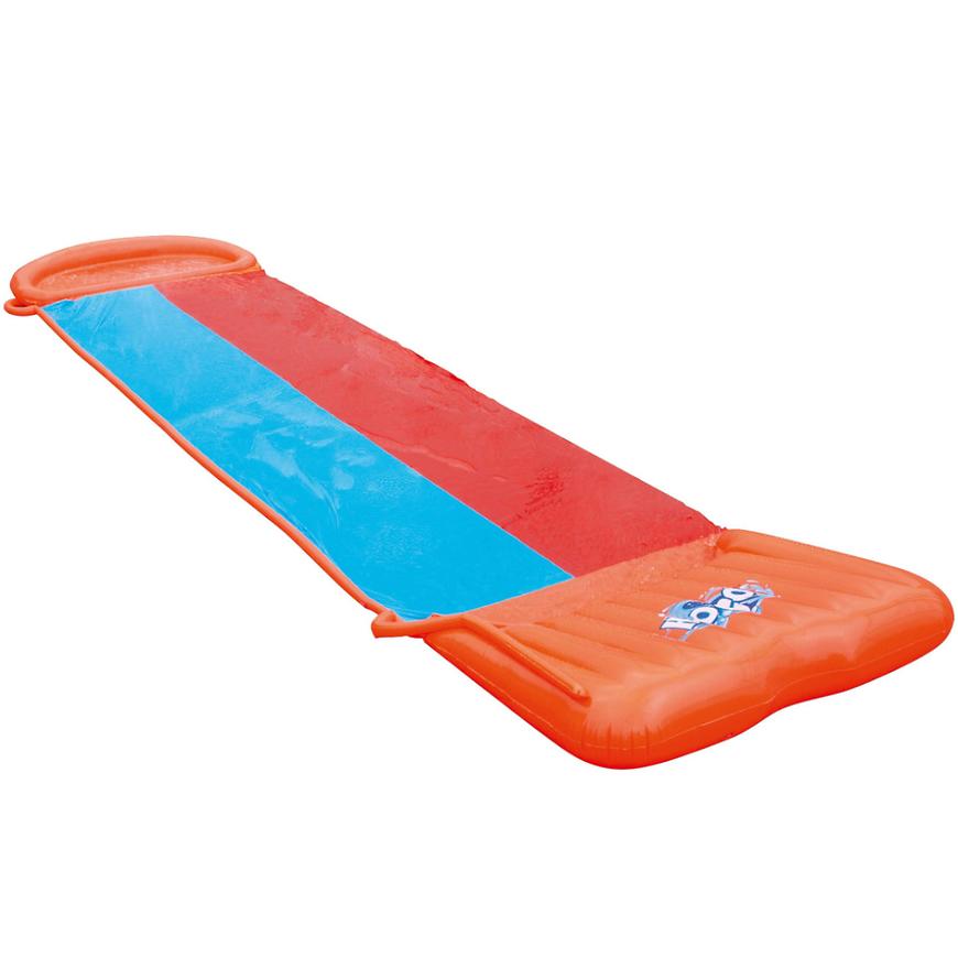 Užite si divoký a zábavný outdoorový čas s H2OGO! Šmykľavka na vodu. Poskytuje viac letnej zábavy vďaka polstrovanej plošine a rýchlostnej rampe v prednej časti. Táto nafukovacia šmykľavka ponúka extra dlhé dvojité sekcie pre dve osoby jazdiace súčasne. Pozvite priateľa, aby sa zapojil do akcie, a súťažte, kto sa dostane na koniec ako prvý. Obsahuje aj plytký bazén s koncovými nárazníkmi. Stačí pripojiť záhradnú hadicu a môžete vyraziť!