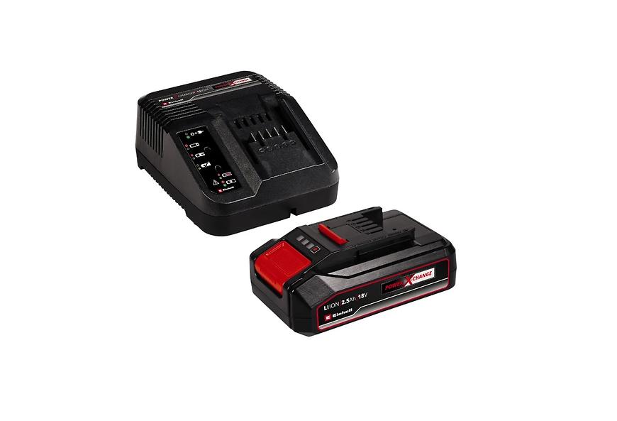 Štartovacia sada Einhell Power X-Change obsahuje jednu 2,5 Ah dobíjaciu batériu a systémovú nabíjačku z inovatívnej lítium-iónovej série.