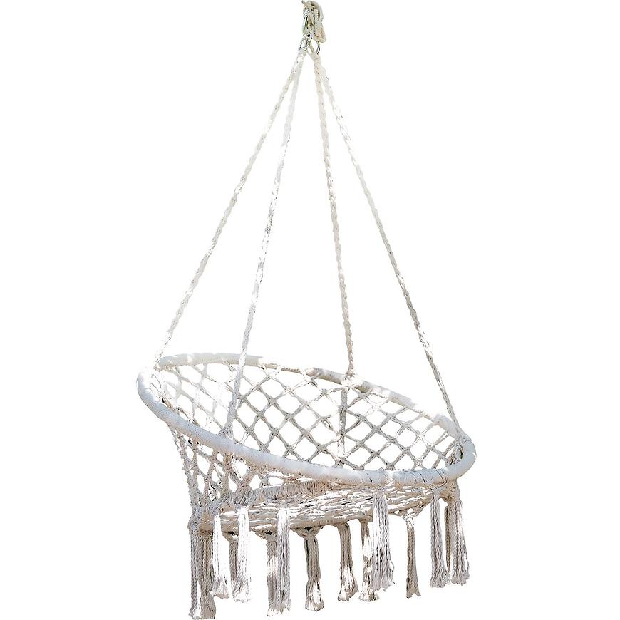 Okrúhla hojdačka na štyroch lanách pre deti a dospelých. Hojdačka má kovový rám, takže sa nemusíte obávať, že sa pri používaní zničí jej tvar, prispôsobí sa zaťaženiu až 120 kg. Pohodlné, napájacie laná vám umožnia umiestniť ju kdekoľvek, len nezabudnite skontrolovať, či po montáži a kyvaní nie sú v blízkosti žiadne prekážky, ktoré by ohrozovali užívateľa. Testovanie hojdačky by malo byť statické, to znamená bez hojdania. Hojdačka má pohodlné operadlo a podrúčky. Dlhé, štýlové strapce okolo sedadla pekne dopĺňajú každú deku vo večernom čase. Hojdačka môže byť zavesená vonku, rovnako ako vo vnútri, čo miestnosti dodá moderný vzhľad. Pri posedení a hojdaní, môžete pohodlne popíjať kávu, čítať knihu alebo sledovať film.