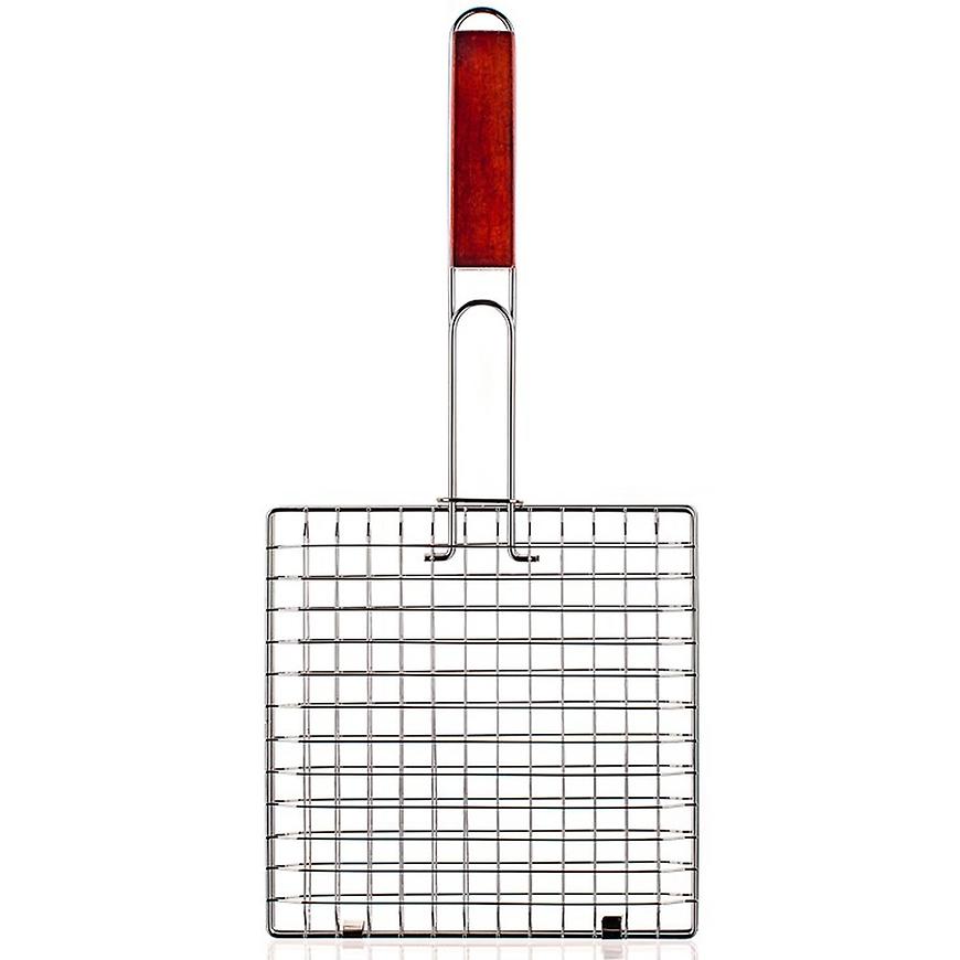 Grilovací rošt hranatý s drevenou rukoväťou s rozmermi 22×22 cm využijete pre ľahké grilovanie mäsa. Rošt je vyrobený z pochrómovanej ocele.