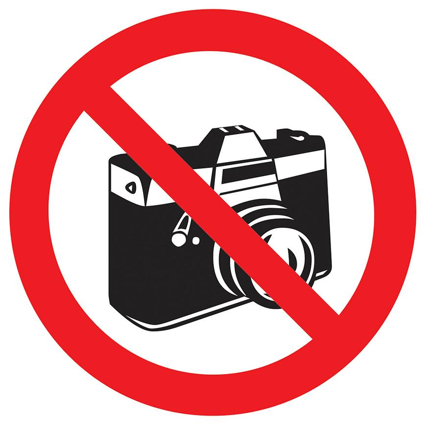 Značka, tabuľka alebo nálepka s nápisom „Zákaz fotografovania” – symbol. Slúži na označenie priestoru kde nie je dovolené fotografovať. Rozmer samolepky 92×92 mm, hrúbka 0,1mm