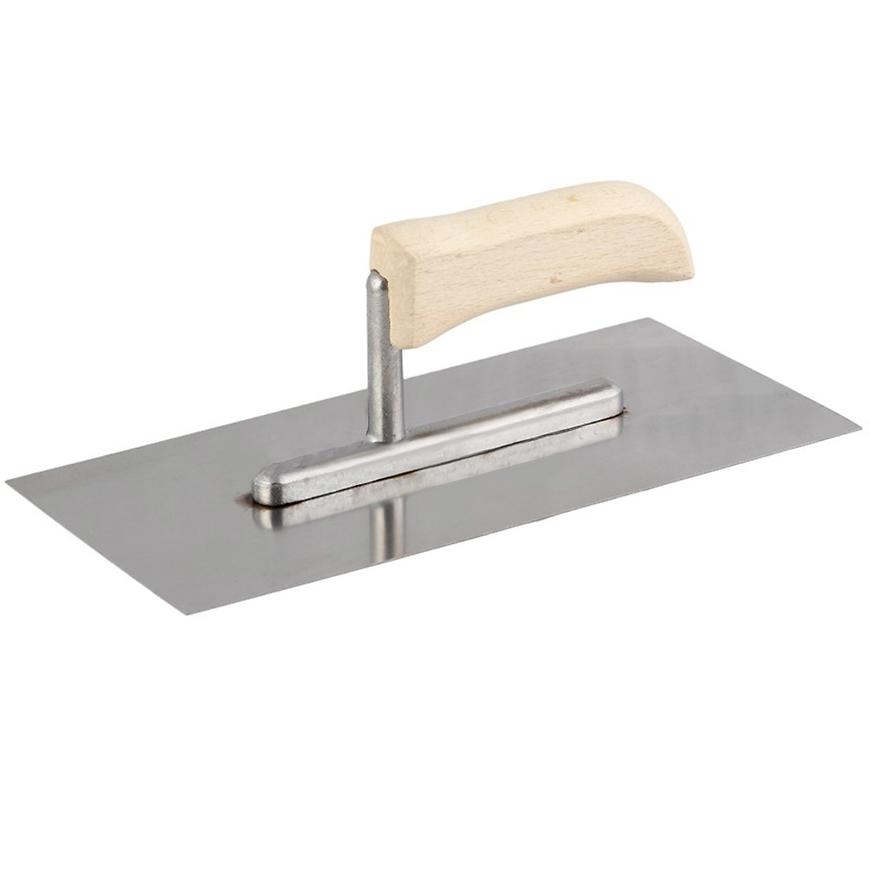 hladítko z nehrdzavejúcej ocele s drevenou rukoväťou a hliníkovou nohou na podlahy a nanášanie mált, lepidiel a sadrových povrchov.