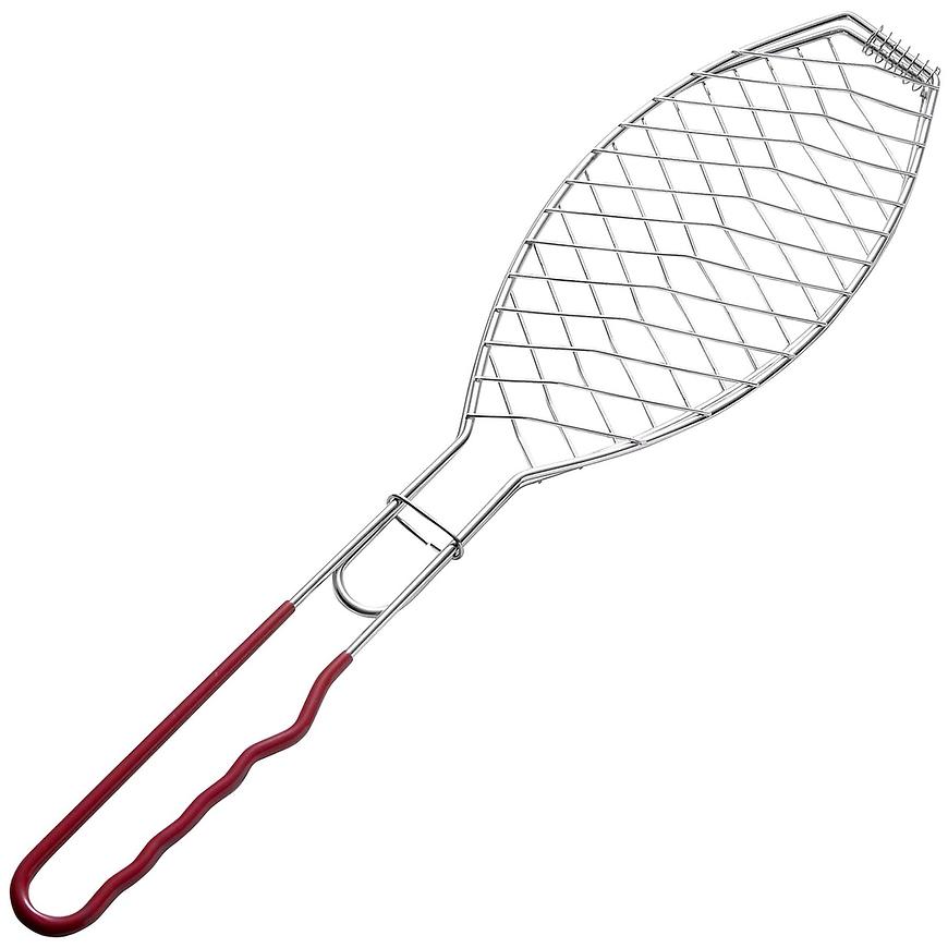 Grilovací otočný rošt vhodný na grilovanie rýb a ich ľahkému obracanie. Rošt je vyrobený z pochrómovanej ocele a plastovým držiakom. Rozmery roštu sú 56×27 cm.
