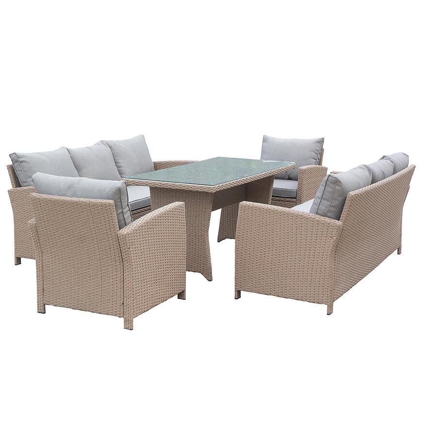 Zostava záhradného nábytku Bados je elegantný a funkčný set vyrobený z technoratanu, ktorý je známy svojou trvácnosťou a odolnosťou voči poveternostným vplyvom. Táto súprava je ideálna na trávenie času vonku, či už na rodinných stretnutiach alebo oddychu s knihou.