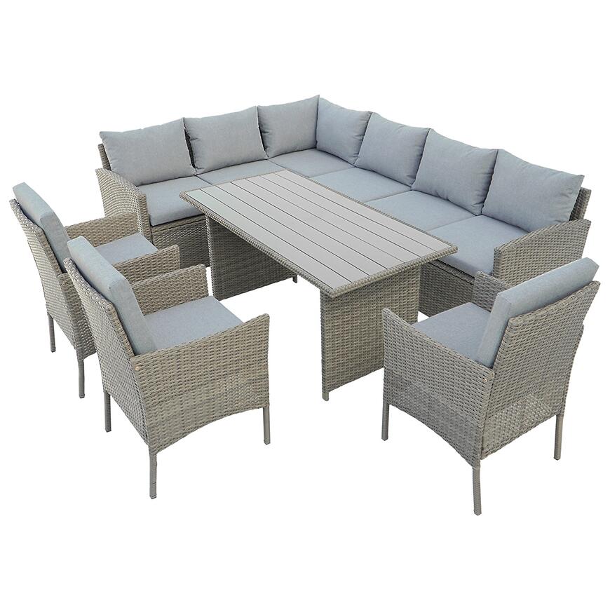 Technoratanová sada Catania je elegantným a funkčným setom záhradného nábytku, ideálnym na vytvorenie útulných priestorov na čerstvom vzduchu. Vyrobená z odolného a voči poveternostným podmienkam odolného technoratanu, zabezpečuje dlhú životnosť a jednoduchú údržbu. Set pozostáva z dvoch pohodlných pohoviek, troch praktických stoličiek a priestranného stola, čo umožňuje pohodlné trávenie času v kruhu rodiny a priateľov. Súčasťou sú aj vankúše, ktoré zvyšujú komfort používania a pridávajú štýlový akcent.