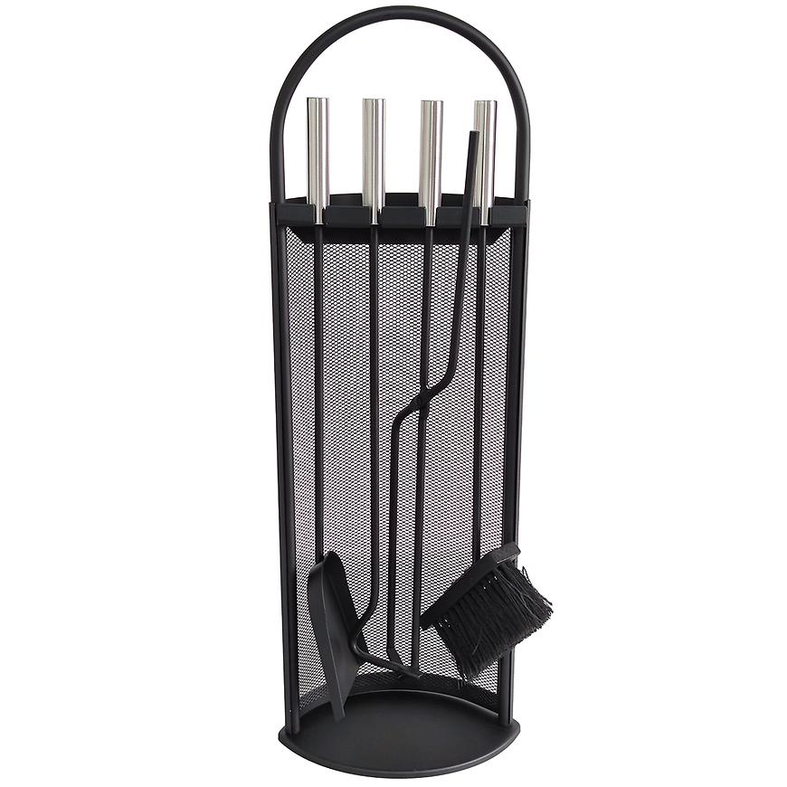 5-dielna súprava vyrobená z ocele. Má moderný dizajn. Praktická rukoväť umožňuje jednoduché prenášanie skrinky na náradie. Sada obsahuje: stojan, kliešte, lopatku, metlu, hák (pohrabáč).
