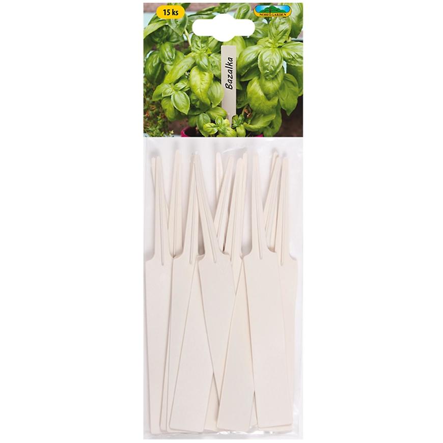 Popisová plastová zapichovacia menovka na označenie rastlín. Farba: béžová. Dĺžka: 14 cm, šírka: 1,8 cm. V balení je 15 kusov.