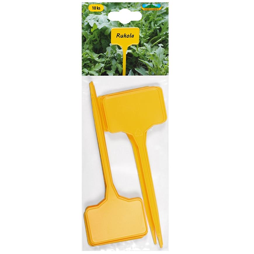 Popisová plastová zapichovacia menovka na označenie rastlín. Farba: žltá. Dĺžka: 15 cm, šírka: 5,5 x 3,5 cm. V balení je 10 kusov.