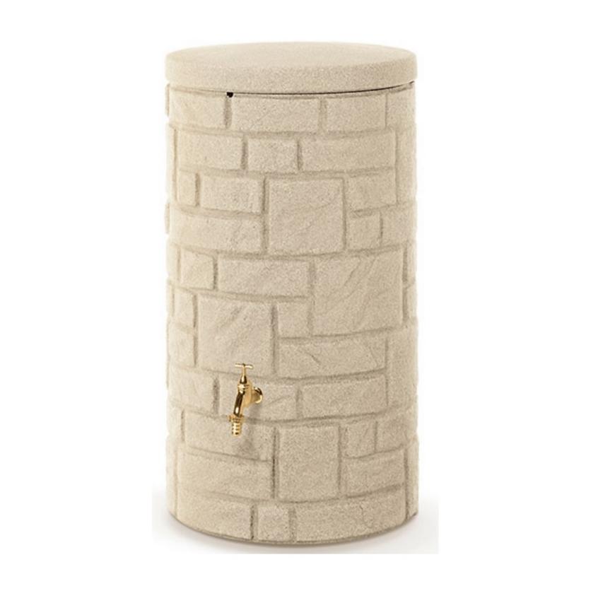 Nádrž na dažďovú vodu v imitácii kamenného stĺpa alebo malej murovanej fontánky. Nádrž z odolného plastu s objemom 230 litrov je praktickým a estetickým riešením na zachytávanie a skladovanie dažďovej vody. Nádrž je nielen praktický, ale aj štýlový doplnok do každej modernej záhrady. Je vyrobený z pevného plastu odolného voči poveternostným vplyvom.