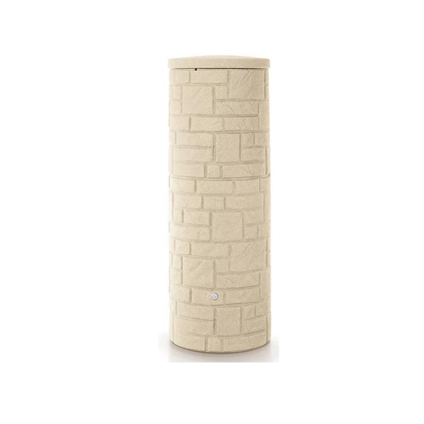 Nádrž na dažďovú vodu v imitácii kamenného stĺpa alebo malej murovanej fontánky. Nádrž z odolného plastu s objemom 360 litrov je praktickým a estetickým riešením na zachytávanie a skladovanie dažďovej vody. Nádrž je nielen praktický, ale aj štýlový doplnok do každej modernej záhrady. Je vyrobený z pevného plastu odolného voči poveternostným vplyvom.