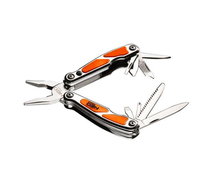 Multifunkčný nástroj NEO (ref. 01-027) je inovatívne riešenie. V jednom nástroji sa nachádza 10 rôznych funkcií vrátane najobľúbenejšieho skrutkovača PH2, ostrého noža potrebného v mnohých situáciách a otvárača na konzervy a fľaše, ktorý je potrebný na mnohých kempovaní. Umiestnený v praktickom puzdre z odolného nylonu na jednoduchú prepravu a skladovanie. Značka NEO spĺňa očakávania profesionálov.