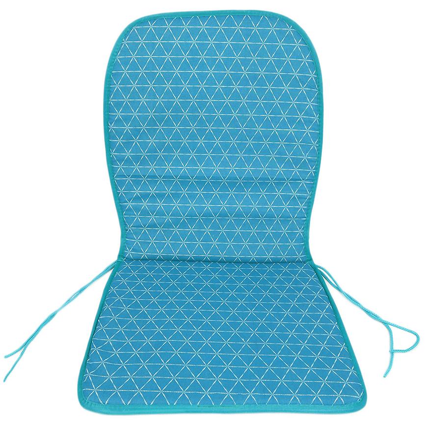 Záhradná poduška s vysokou opierkou má v ohybe šnúrky na pripevnenie k stoličke. Je obšitá lemovkou, ktorá farebne ladí.