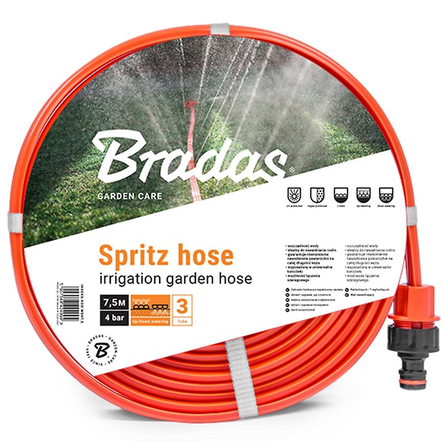 3 kanálový systém – 7,5m ˝SPRITZ HOSE˝. Perforovaná hadica s tromi radmi 1/2˝ ponorných otvorov. Ukončené s armatúrami z vysoko kvalitného ABS materiálu. Hodí sa pre všetky plug-in zavlažovacie systémy.