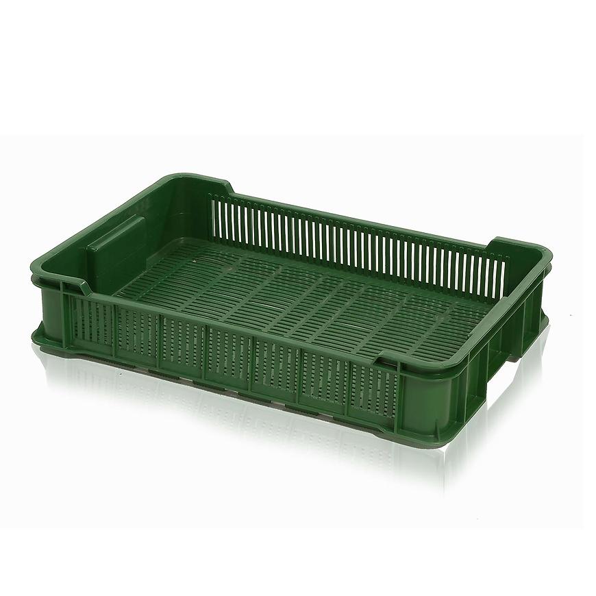 Prepravky na ovocie a zeleninu sú veľmi praktické vďaka nízkej hmotnosti. Perforovanie v debnách umožňuje prístup vzduchu k potravinám a ich dlhšiu trvanlivosť. Normované rozmery 60 x 40 cm sú ideálne pre transport a manipuláciu na paletách. Plastové boxy vyrobené z regranulátu, alebo z vysoko akostného polyetylénu. Odolné voči olejom, živiciam a zásadám. Farba prepravky je iba ilustratívne.