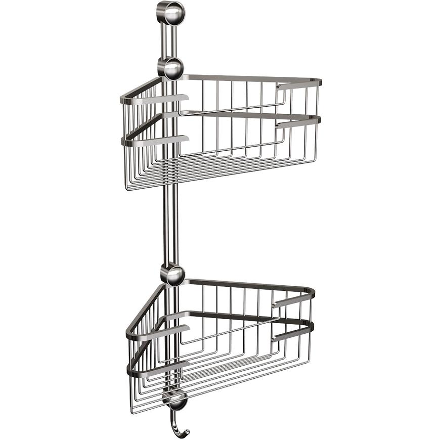 Rohová kúpeľňová polička – dvojitý kôš