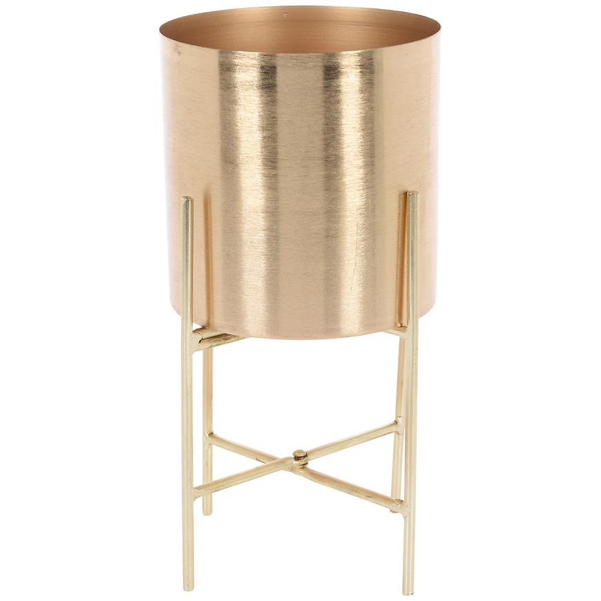 Stojaci kovový kvetináč, zlatý, 15x15x30
