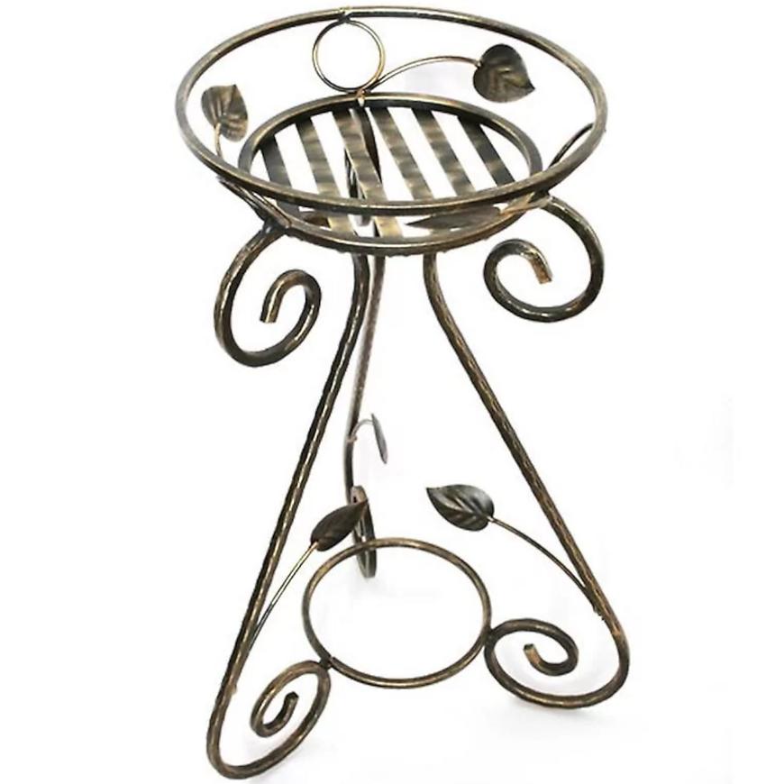Stojan na jeden kvetináč je vyrobený z kovu, dostupný vo farbe zlatej patiny. Precízne spracované kované prvky stojana zapadnú prakticky ku každému štýlu. Robustnosť a estetika výrobku zabezpečia vynikajúcu expozíciu rastlín. Na objednávku je výrobok k dispozícii v čiernej farbe alebo vo farbe striebornej patiny.