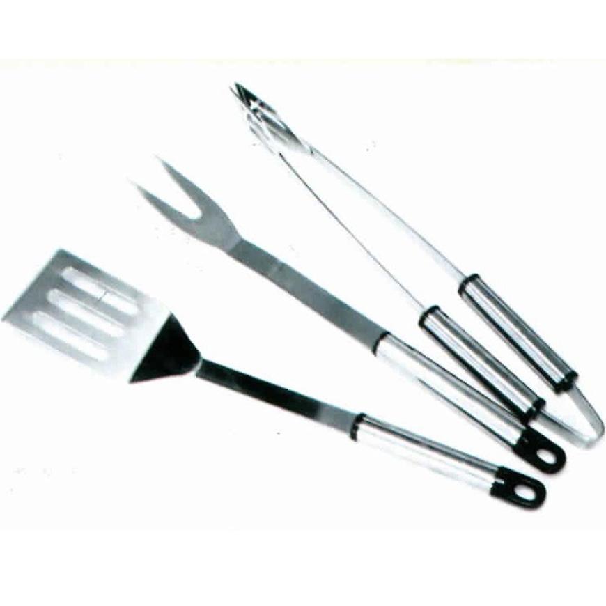 3 dielna sada grilovacieho náčinia obsahuje kliešte, obracačku a vidličku z nerez ocele. Sada obsahuje základné náradie potrebné pri grilovaní. Náradie je vybavené očkami na zavesenie.