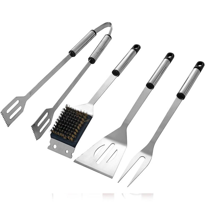 4 dielna sada grilovacieho náčinia obsahuje kefu, kliešte, obracačku a vidličku z nerez ocele. Sada obsahuje základné náradie potrebné pri grilovaní. Náradie je vybavené očkami na zavesenie.