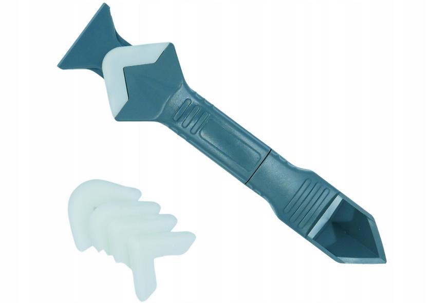 Nástroj určený na zbavenie sa starých škár, silikónu a škárovacej hmoty. Je vybavený škrabkou, ktorá rýchlo zoškrabe starý silikón. Druhá strana pomôcky umožňuje pohodlné roztieranie čerstvého silikónu. Súprava je vybavená 5 prelismi na druhej strane prístroja, vďaka ktorým nanesieme nové škárovacie hmoty, silikón a dôkladne vyhladíme