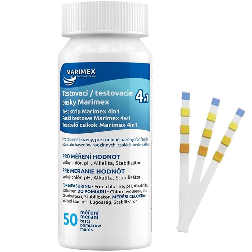 Testovacie pásiky na meranie hodnoty pH, voľného chlóru, alkality a stabilizátora. V balení je 50 pásikov.