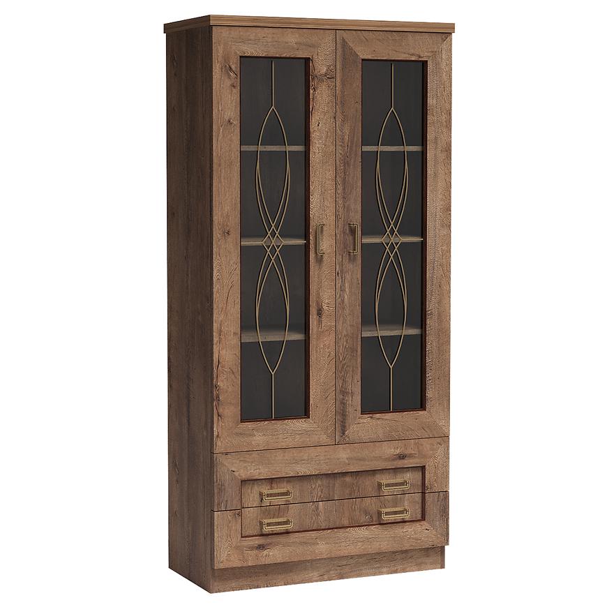 Dvojdverová vitrína je ďalším kusom nábytku z kolekcie TADEUSZ. Vrchnú časť tvoria sklenené dvierka s elegantným vzorom. Spodnú časť vypĺňajú dve zásuvky, do ktorých môžeme uložiť napríklad príbory alebo obrúsky. Vitrína bude fungovať v obývačke a jedálni, kde budú vystavené pre nás najcennejšie veci. Celok dopĺňajú elegantné kovové úchytky.