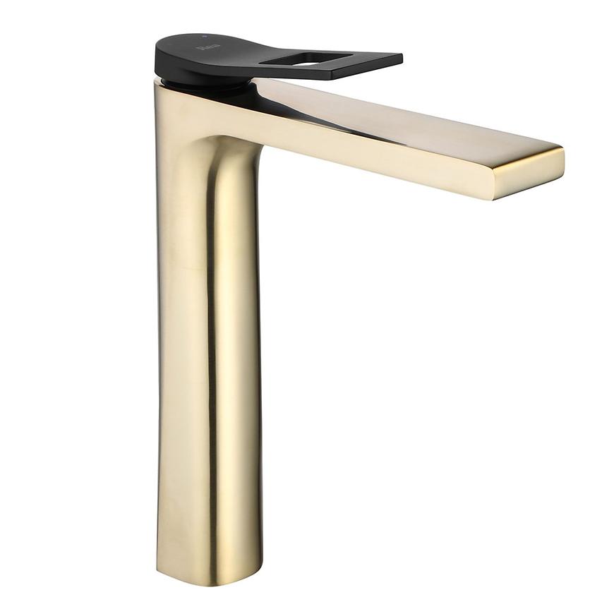 Vysoká umývadlová batéria Rea Soul zlato brúsené – čierna