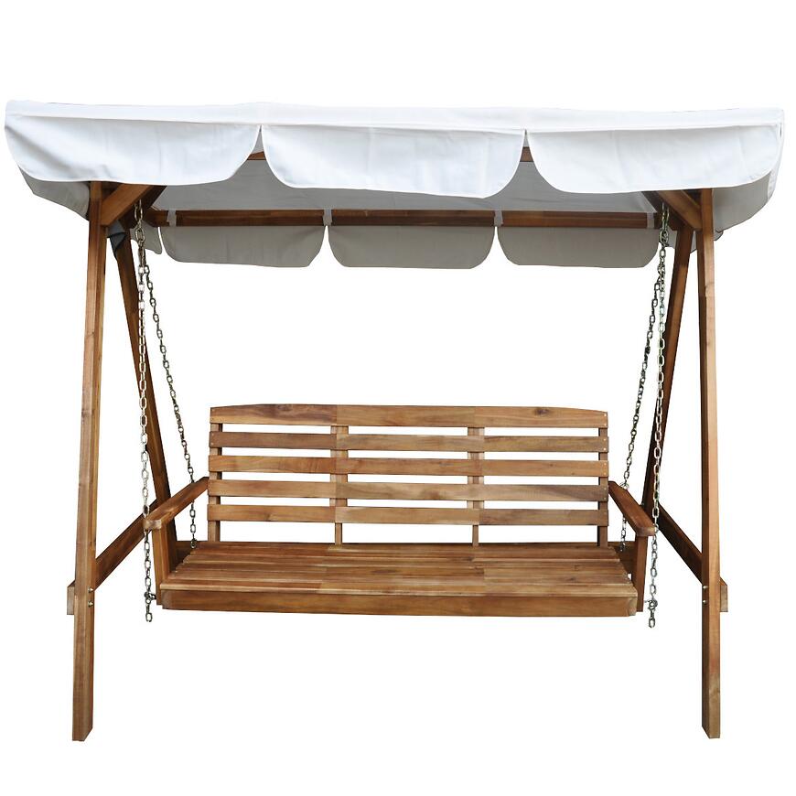 Moderná drevená záhradná hojdačka vám poskytne pohodlie pri relaxácii na záhrade. Hojdačka má pevný rám odolný proti poškodeniu. Pohodlné sedadlo a strieška zaistia pohodlie počas relaxácie. Prírodné agátové drevo, z ktorého je hojdačka vyrobená, sa dokonale zmestí do každej záhrady a zaručí trvácnosť produktu.