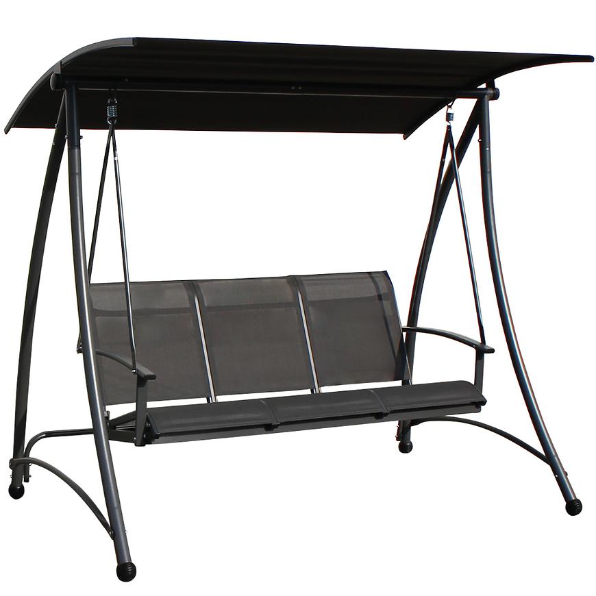 Štýlová trojmiestna hojdačka v grafitovej farbe, ktorá spríjemní čas strávený na čerstvom vzduchu počas relaxácie, stretnutí s rodinou alebo priateľmi. Moderný nábytok na mnoho sezón, vďaka použitým materiálom, ako sú kovové rúrky a sedadlo z dvojvrstvového textilného materiálu, napnutého a ukotveného v kovových zámkoch. Sedadlo držia stabilné hrubé pružiny, ktoré sú oveľa bezpečnejšie ako bežné karabínky. Okrem toho sa výrobca postaral o posilnenie nôh umiestnením kovových prútov po stranách a vzadu, čo pridáva elegantný vzhľad celku. Takýto nábytok určite ozdobí terasu, záhradu, balkón alebo chatu. Neodmysliteľnou výhodou tejto hojdačky je pevná strieška s nastaviteľným sklonom, vďaka čomu si môžete vychutnať odpočinok na záhrade kedykoľvek počas dňa. Striešku je možné zložiť a v prípade znečistenia vyprať v práčke pri nízkej teplote.