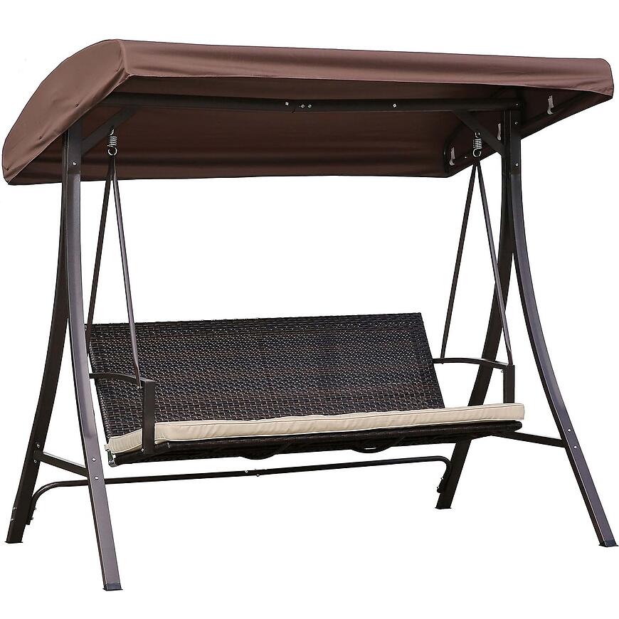 Záhradná hojdačka technoratan hnedá s vankúšmi