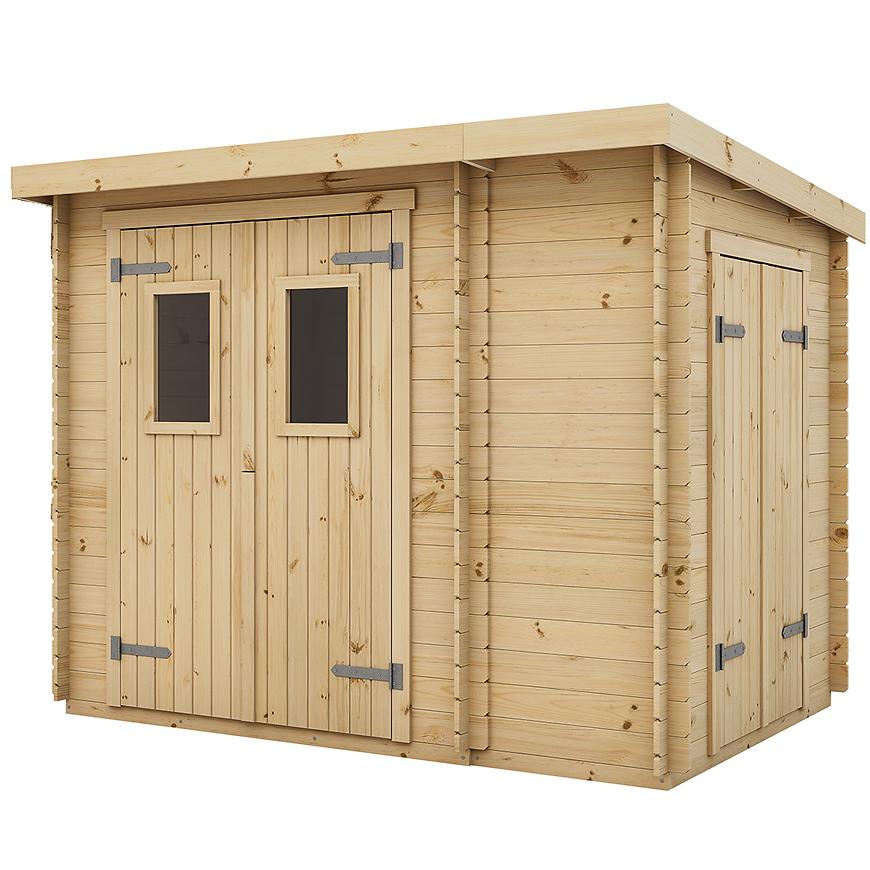 Drevený záhradný domček Skrzyp bude ideálnym miestom pre sklad. Je zastrešený plochou strechou, zo smrekového dreva, tak ako celý dom. Strecha je pokrytá asfaltovou lepenkou. Dom sa vyznačuje modernou a jednoduchou formou.