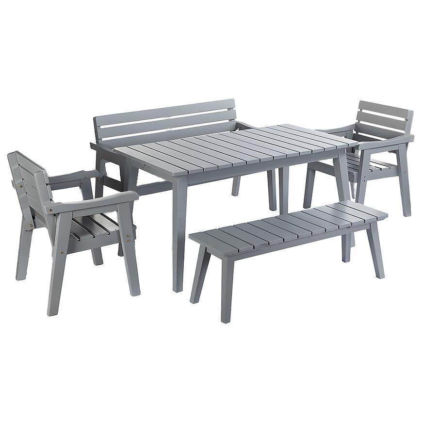 Všetky prvky súpravy sú vyrobené z vysoko kvalitného dreva, ktoré je trvácne a estetické. Táto súprava spája funkčnosť a eleganciu, vďaka čomu budú vaše vonkajšie priestory vyzerať výnimočne a budú pohodlné na dlhodobé používanie.